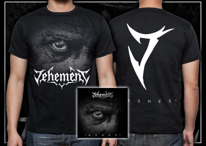 Vehement’s sophomore album ‘Ashes’, CD in Jewel Case AND Mens ‘ASHES’ T-Shirt – 2 sided screen print on Gildan garments.